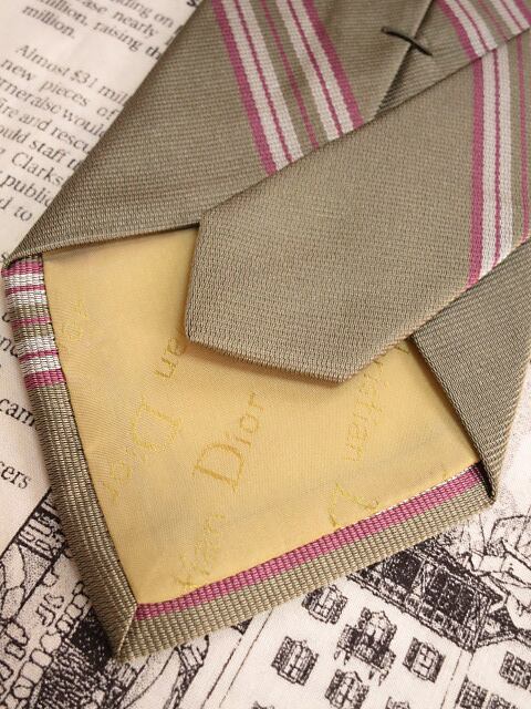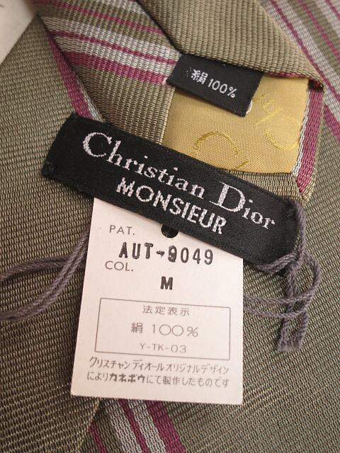 クリスチャンディオール Christian Dior 美品 新品未使用タグ付 微光沢 ネクタイ シルク100% 斜めストライプ レジメンタル ミックス S-005751