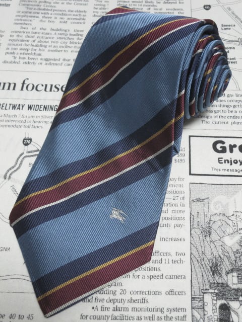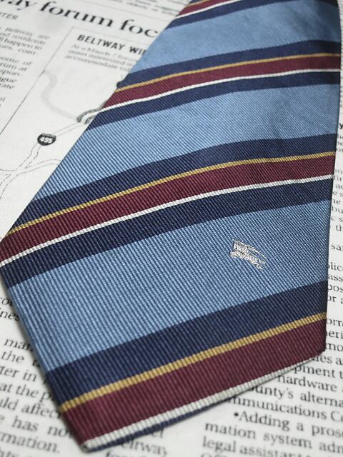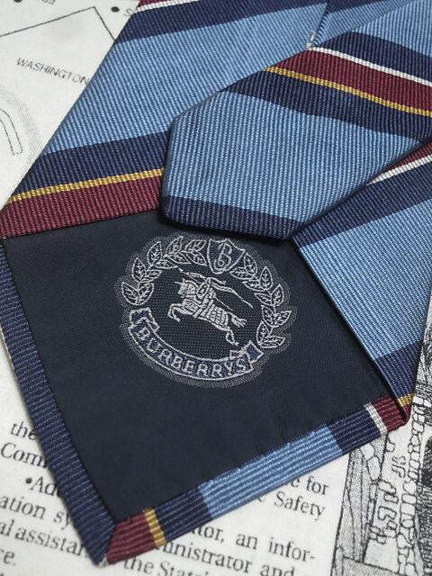 バーバリー Burberry 良品 微光沢 ネクタイ イタリア製 シルク100% 斜めストライプ レジメンタル ロゴマーク柄 ミックス S-005767