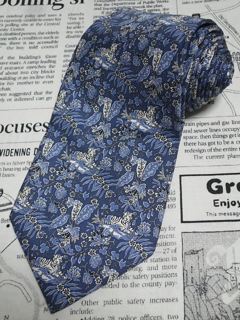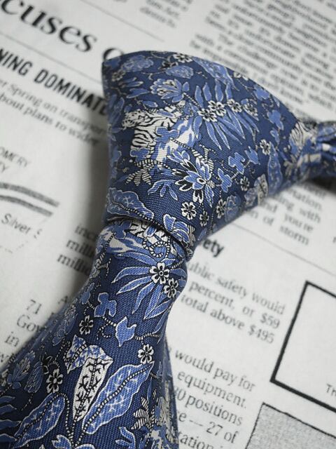 サルヴァトーレ フェラガモ Salvatore Ferragamo 微光沢 ネクタイ イタリア製 シルク100% 花柄 植物柄 濃紺系 ネイビー系 S-005781