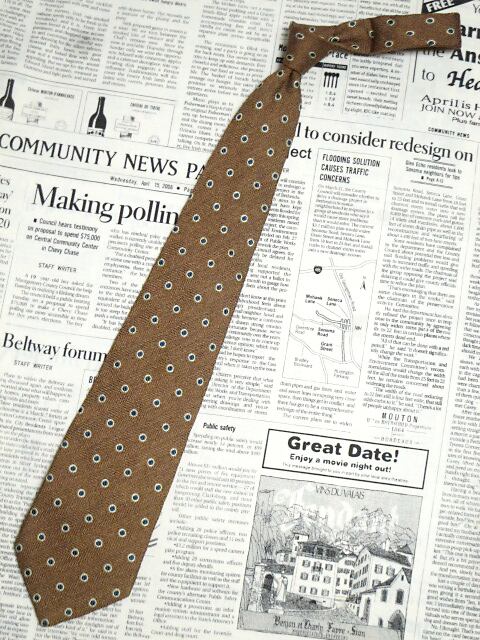 ジャンポールゴルチエ Jean Paul GAULTIER ゴルティエ 良品 微光沢 ネクタイ イタリア製 シルク100% ドット柄 茶系 ブラウン系 R-005736