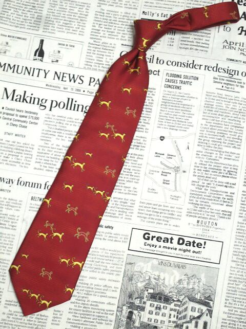 ランバン LANVIN 美品 未使用品 微光沢 ネクタイ フランス製 シルク100% 猫科 アニマル 動物 ねこ科 レッド系ベース 赤系 R-005746