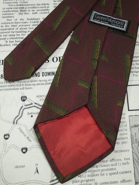 ヴェルサーチ VERSACE 微光沢 ネクタイ イタリア製 シルク100% パターン柄 えんじ系ベース R-005729
