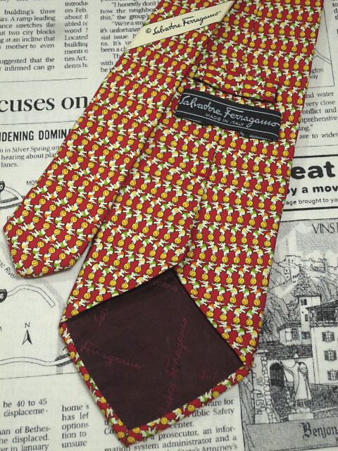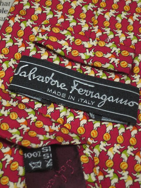サルヴァトーレ フェラガモ Salvatore Ferragamo ネクタイ イタリア製 シルク100% 象 ゾウ サーカス レッド系ベース 赤系 R-005732