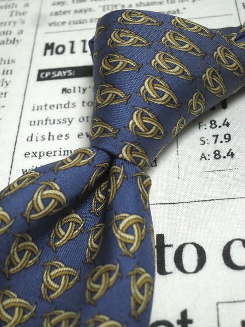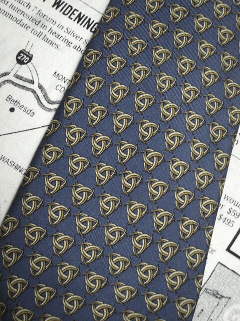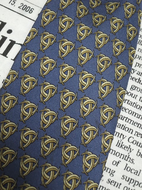 エルメス HERMES 微光沢 ネクタイ フランス製 シルク100% パターン柄 濃紺系 ネイビー系 R-005721