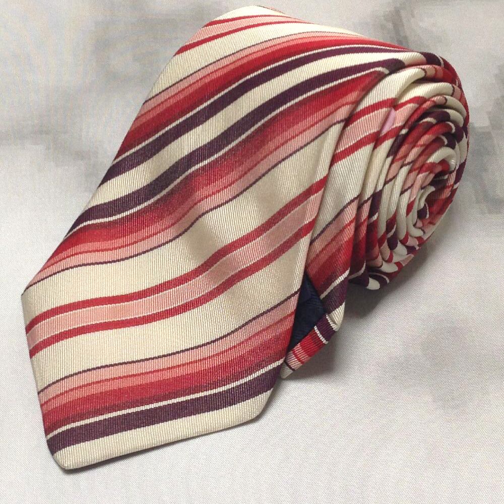 シップス SHIPS 微光沢 ネクタイ イタリア製 シルク100% 斜めストライプ レジメンタル レッド系 赤系 T-009281