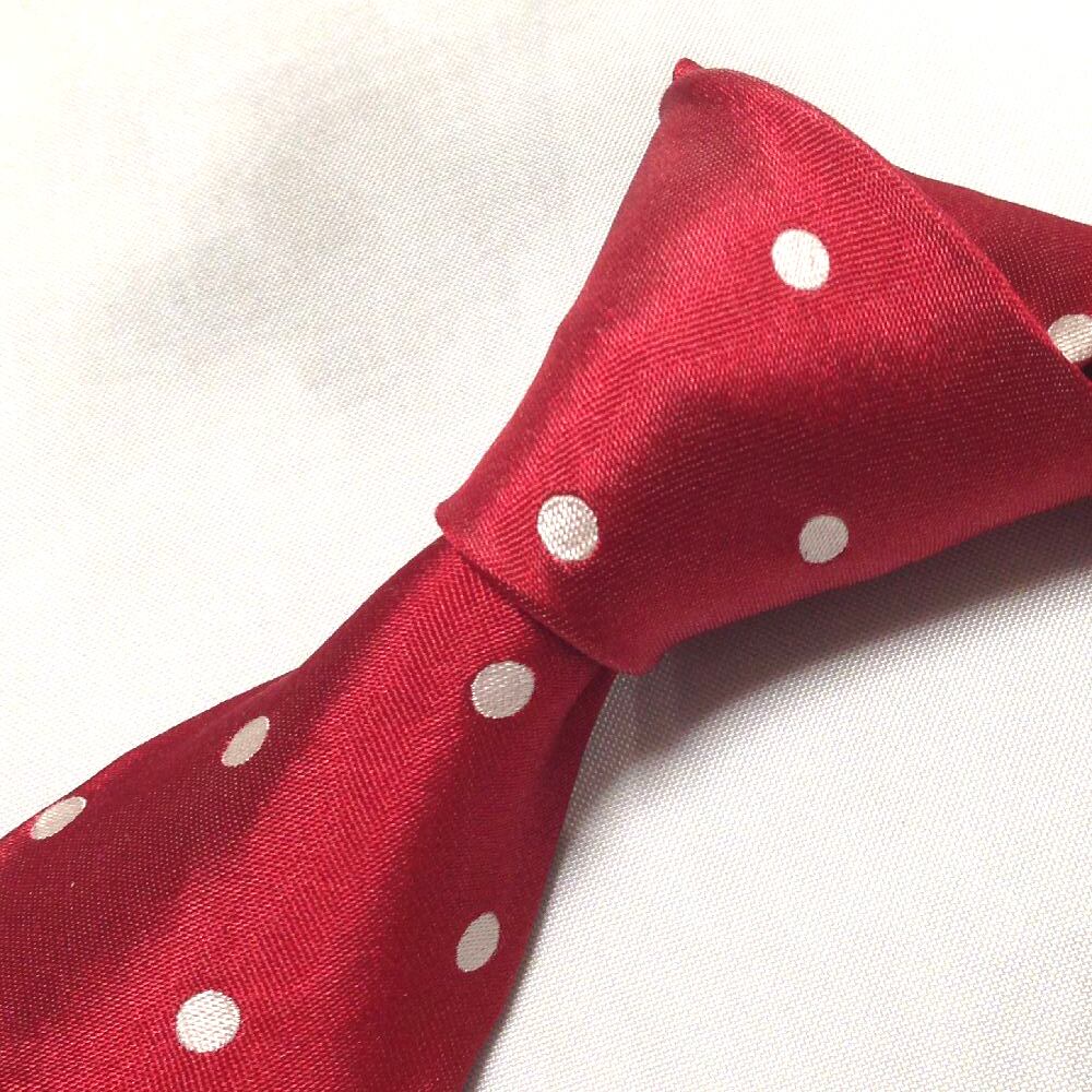 アニエスベー agnes b. 良品 微光沢 ネクタイ フランス製 シルク100% ドット柄 ナロータイ レッド系 赤系 T-009282