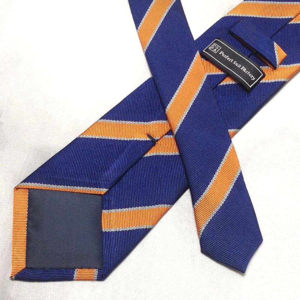 パーフェクトスーツファクトリー PSFA P.S.FA 美品 微光沢 ネクタイ 斜めストライプ 濃紺系 ネイビー系 T-009289