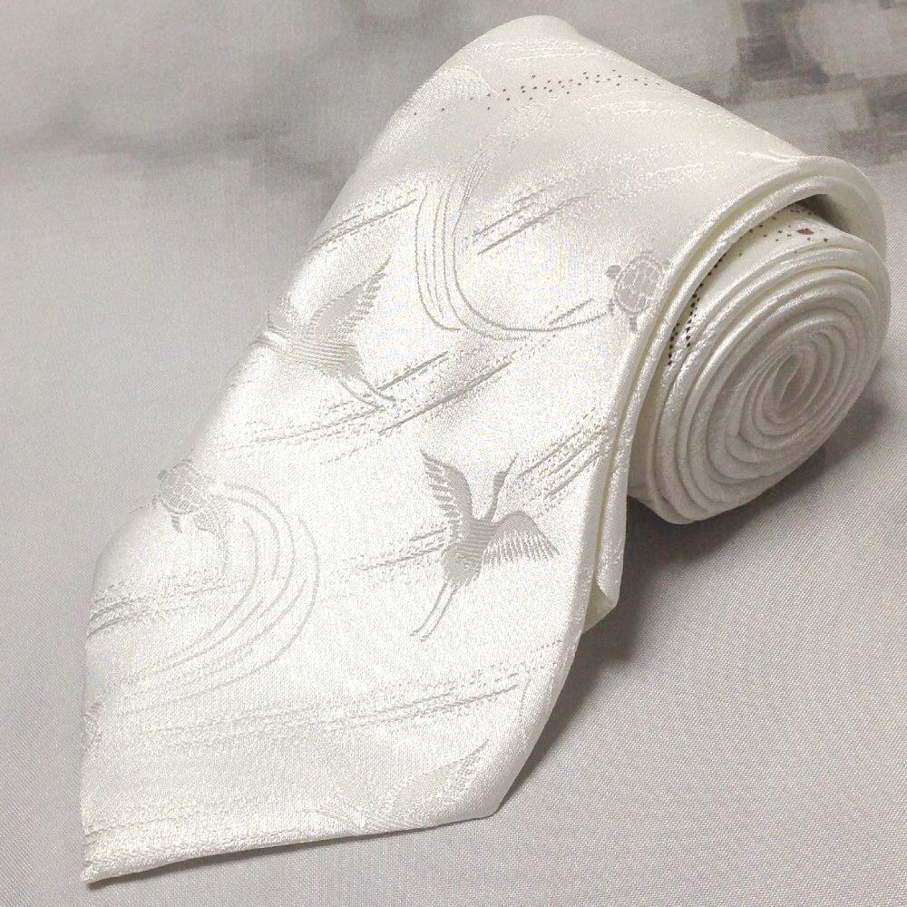 甲州織 美品 微光沢 ネクタイ ポリエステル100% 冠婚葬祭 礼装 白系 ホワイト系 T-009291