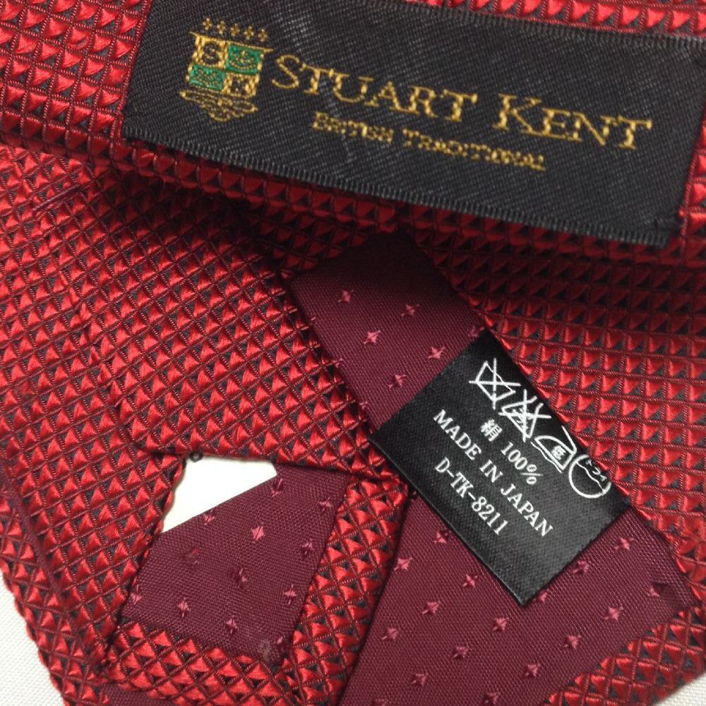 スチュアートケント STUART KENT 良品 微光沢 ネクタイ 日本製 シルク100% パターン柄 ワインレッド系 赤系 T-009301