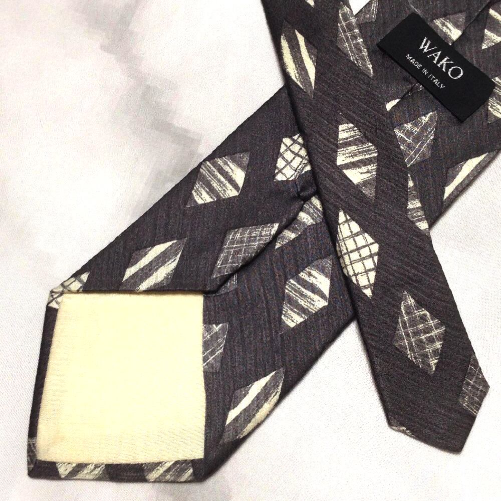 和光 WAKO 美品 微光沢 ネクタイ イタリア製 シルク100% パターン柄 グレー系 T-009302