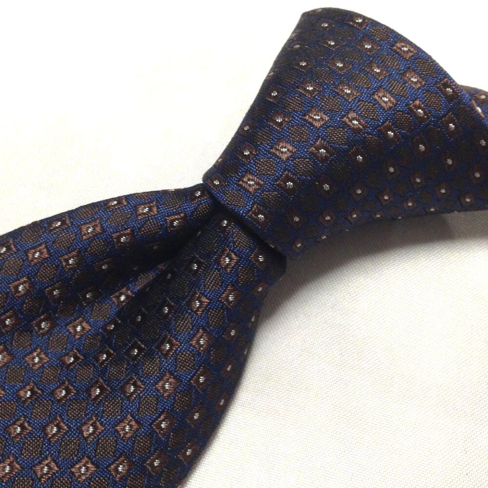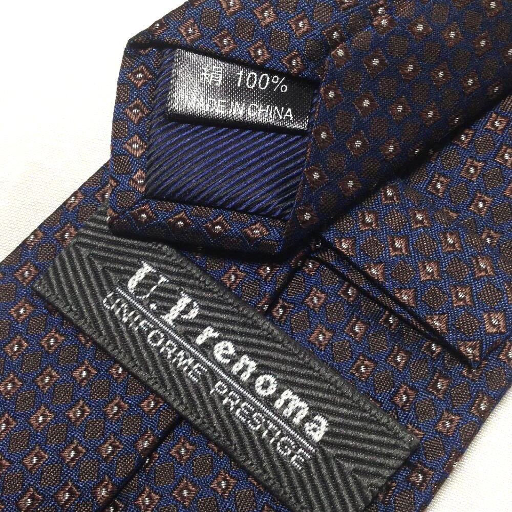 レノマ renoma up 美品 微光沢 ネクタイ シルク100% パターン柄 濃紺系 ネイビー系 T-009304