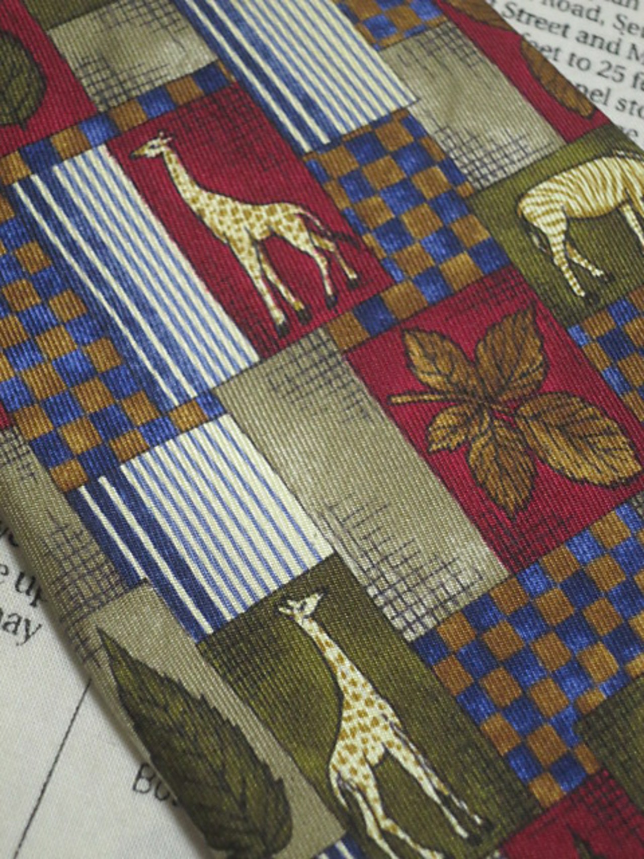ダンヒル dunhill 良品 微光沢 ネクタイ イタリア製 シルク100% キリン シマウマ 動物 アニマル ミックス Q-005656