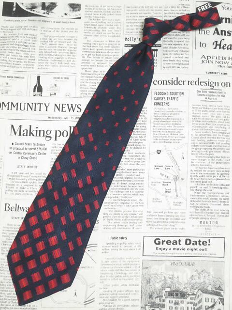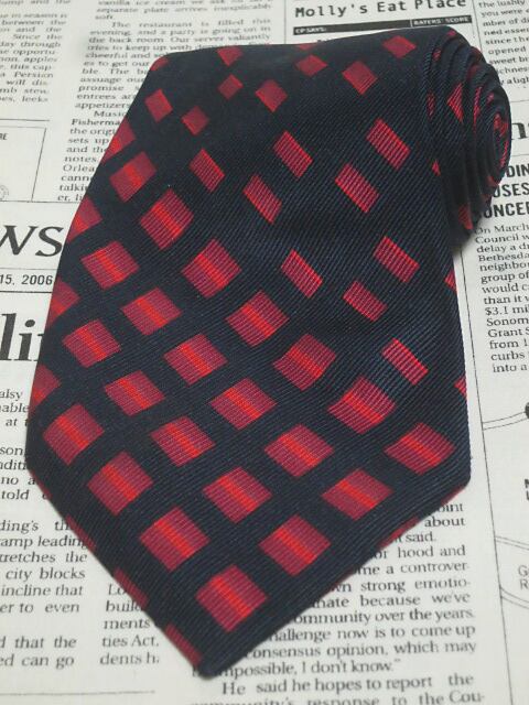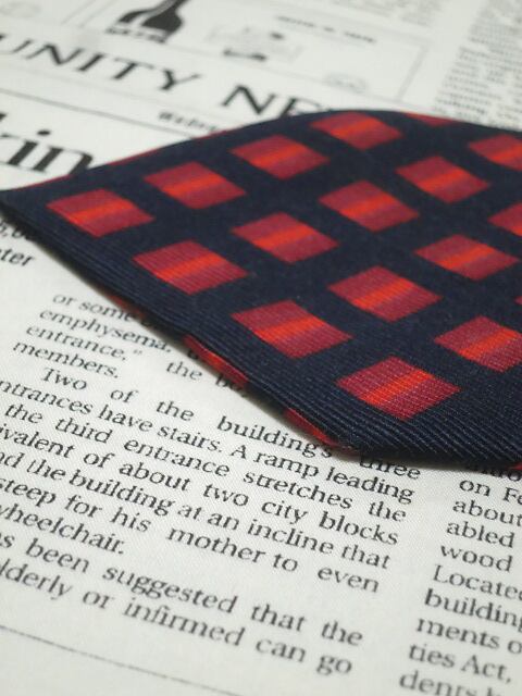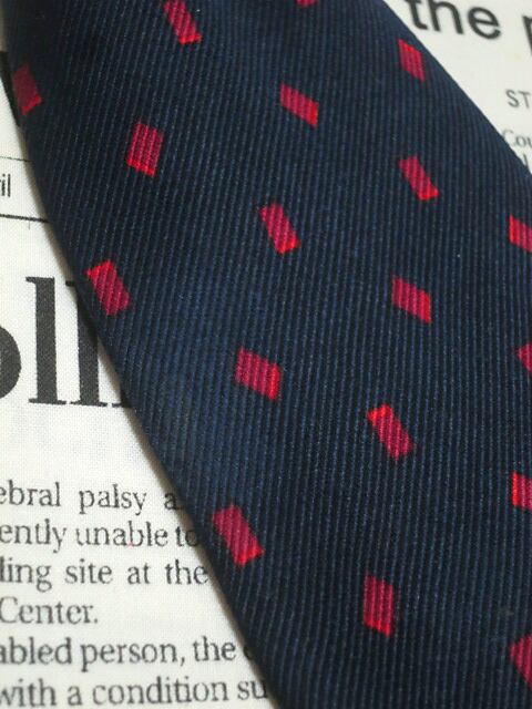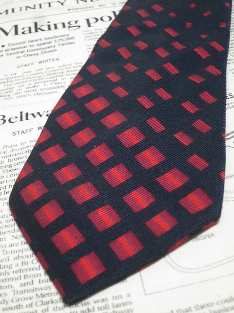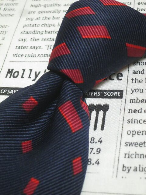 ランバン LANVIN 微光沢 ネクタイ シルク ブロック柄 濃紺系ベース ネイビー系 Q-005660