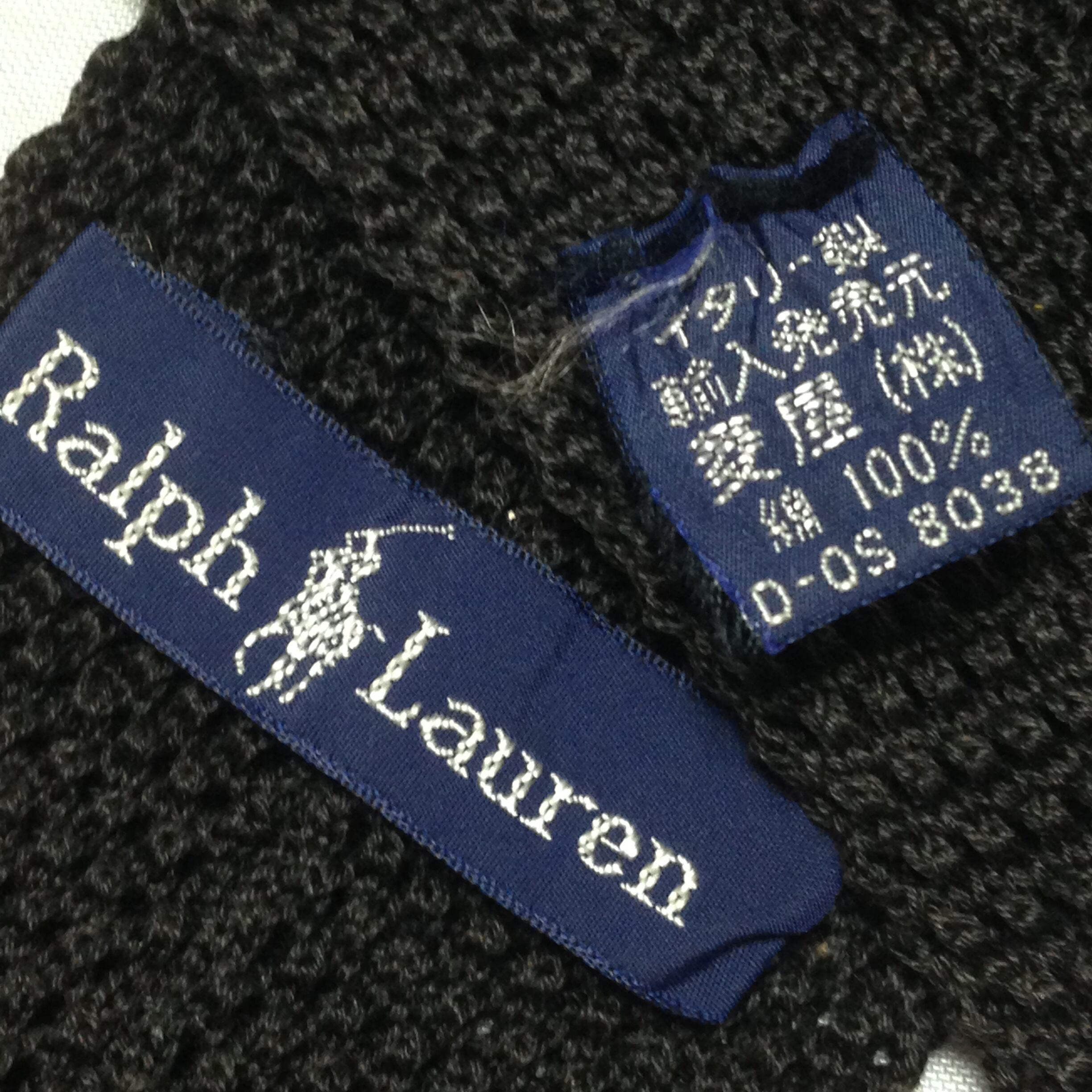 ラルフローレン RALPH LAUREN 微光沢 ネクタイ ニット スクエア タイ ナロータイ ワンポイント 黒系 ブラック系 T-009305