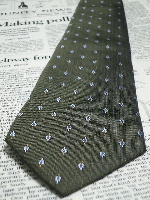 ダンヒル dunhill 美品 未使用品 微光沢 ネクタイ イギリス製 シルク100% リーフ柄 葉柄 ミックス M-005500