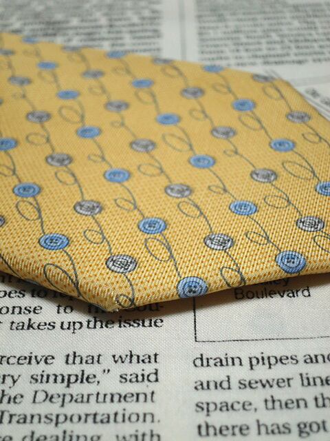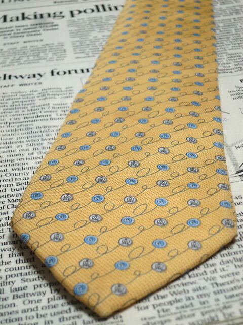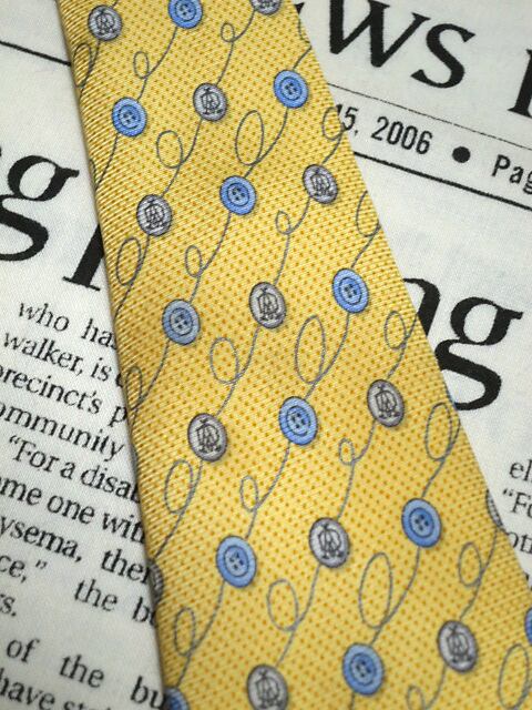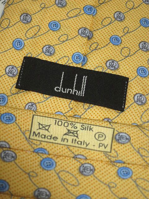 ダンヒル dunhill 微光沢 ネクタイ イタリア製 シルク100% ボタン柄 黄系 イエロー系 M-005501