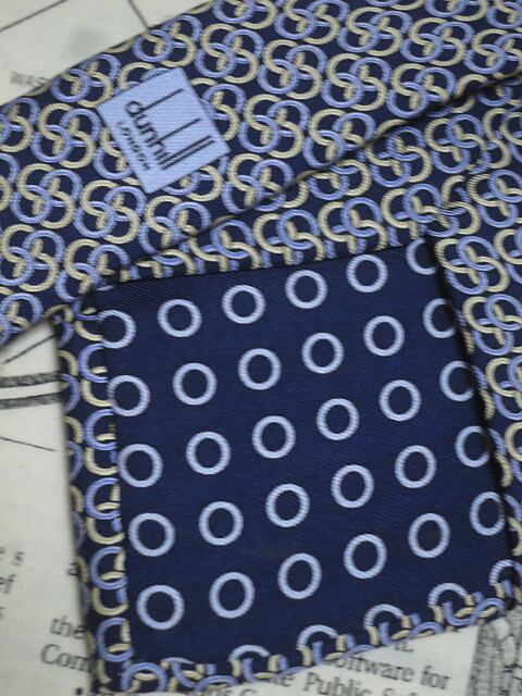 ダンヒル dunhill 微光沢 ネクタイ イタリア製 シルク100% パターン柄 裏地輪柄 濃紺系 ネイビー系 M-005505