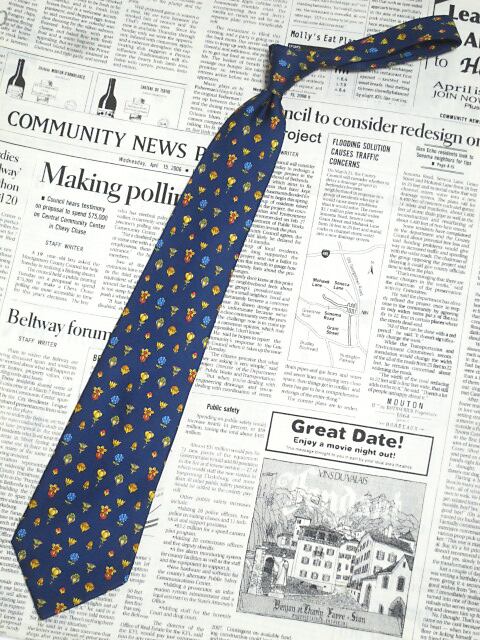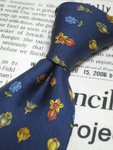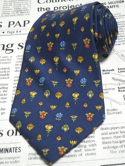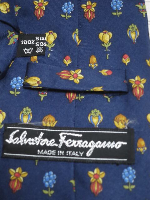 サルヴァトーレ フェラガモ Salvatore Ferragamo 美品 微光沢 ネクタイ イタリア製 シルク100% 小花柄 濃紺系ベース ネイビー系 M-005508
