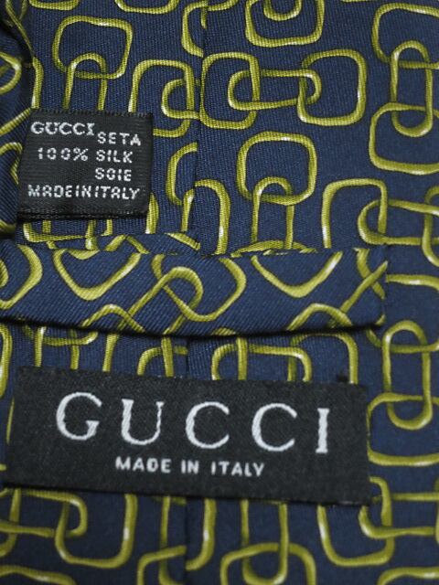 グッチ GUCCI 微光沢 ネクタイ イタリア製 シルク100% 鎖柄 濃紺系ベース ネイビー系 M-005509