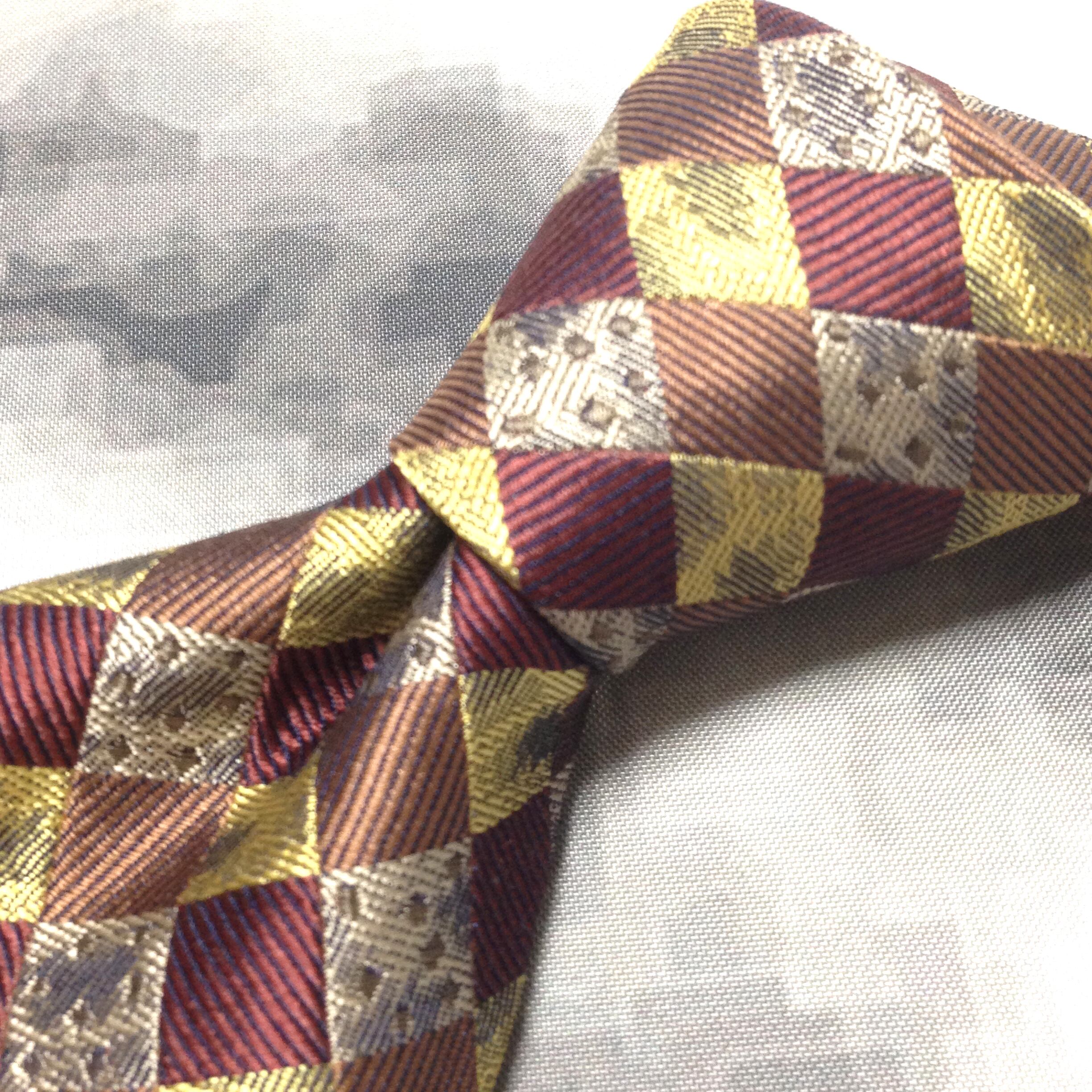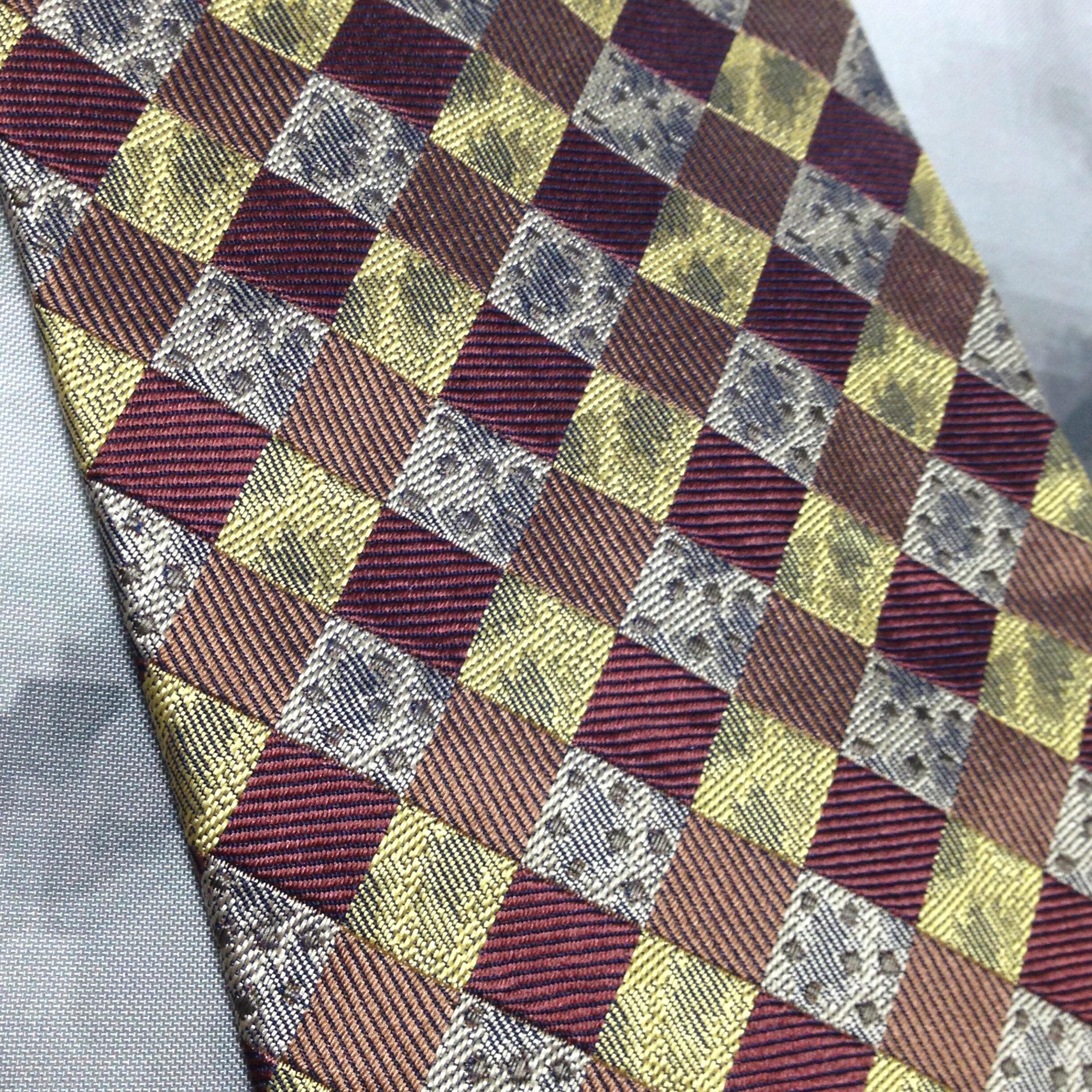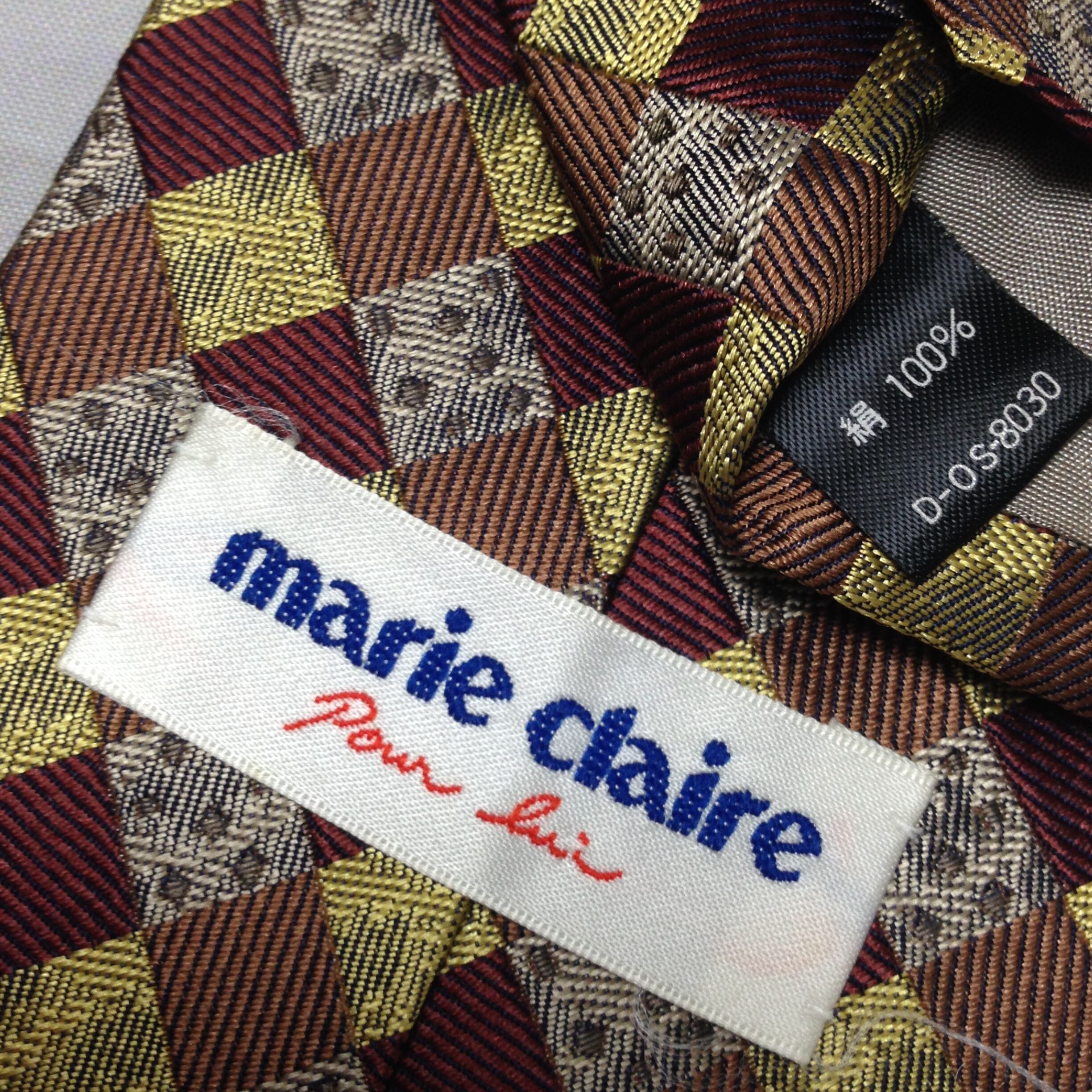 マリクレール marie claire 良品 微光沢 ネクタイ シルク100% チェック柄 茶系 ブラウン系 T-009320