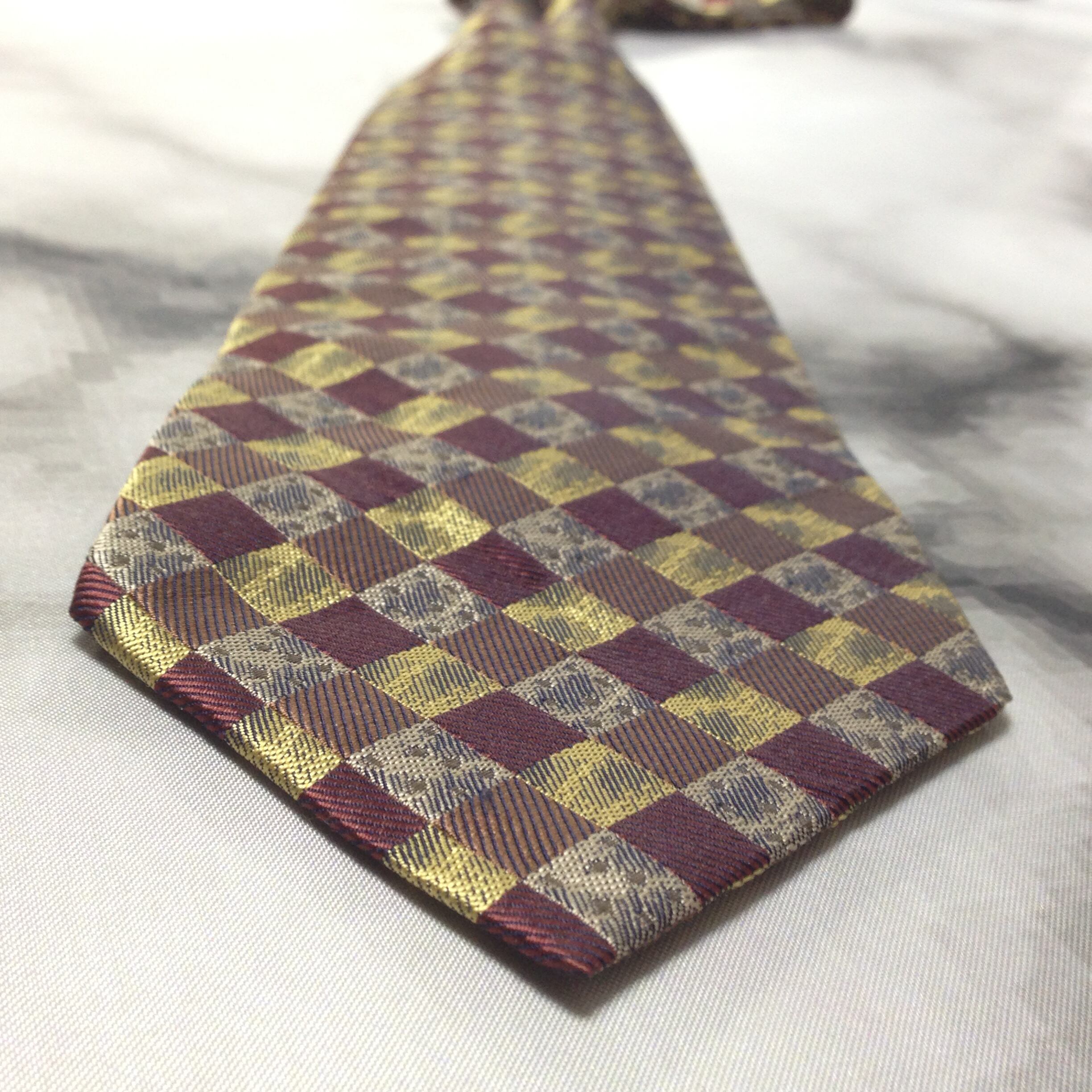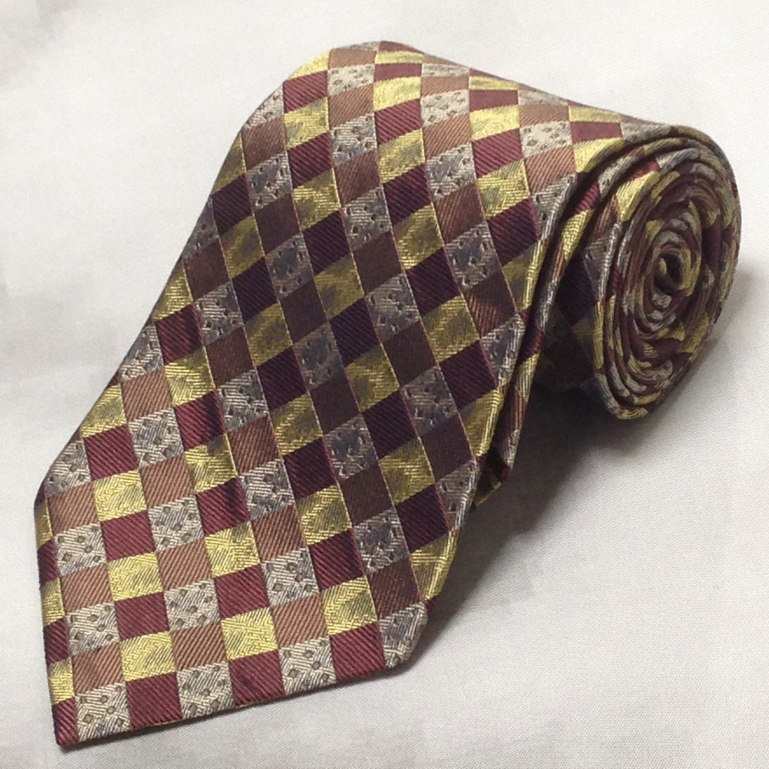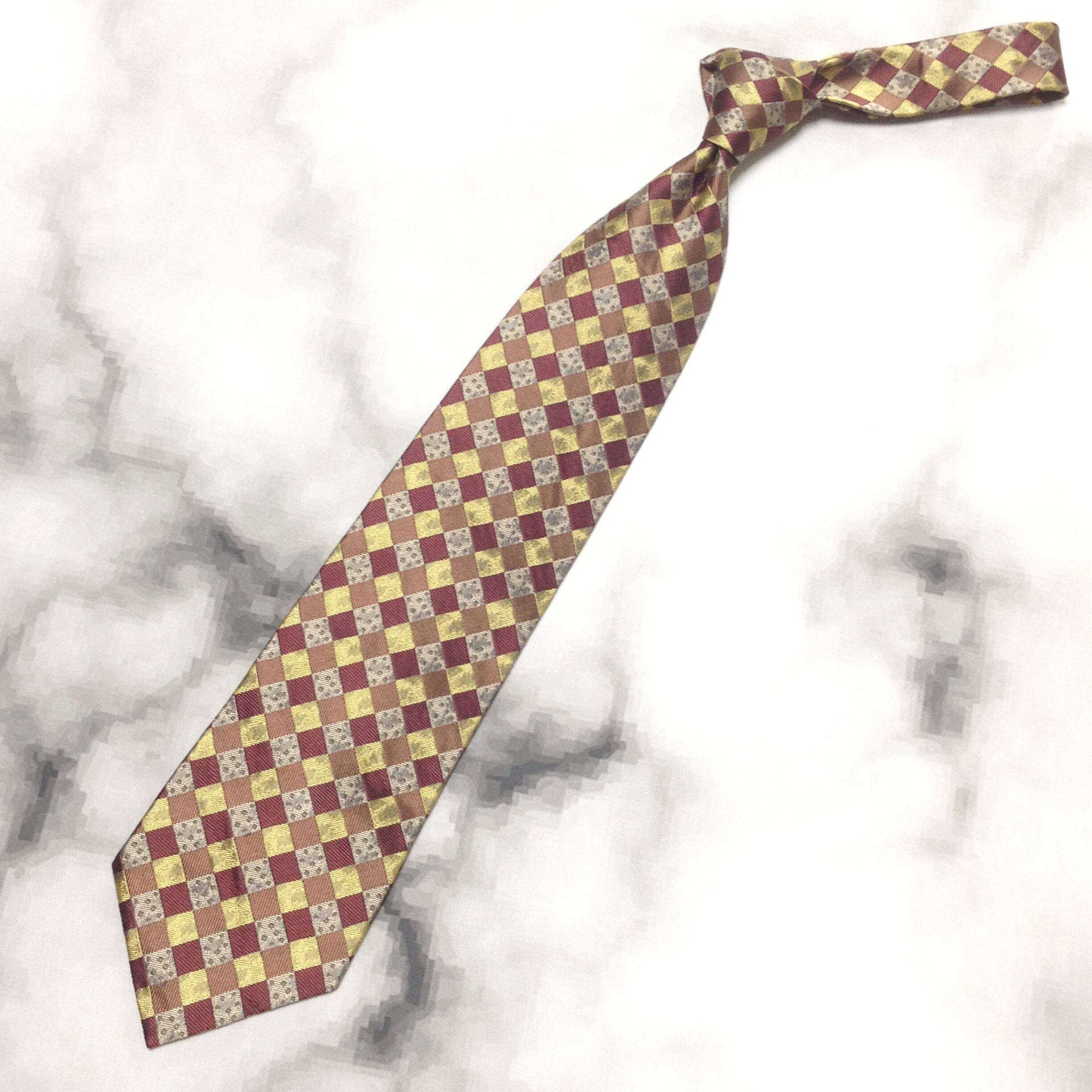 マリクレール marie claire 良品 微光沢 ネクタイ シルク100% チェック柄 茶系 ブラウン系 T-009320
