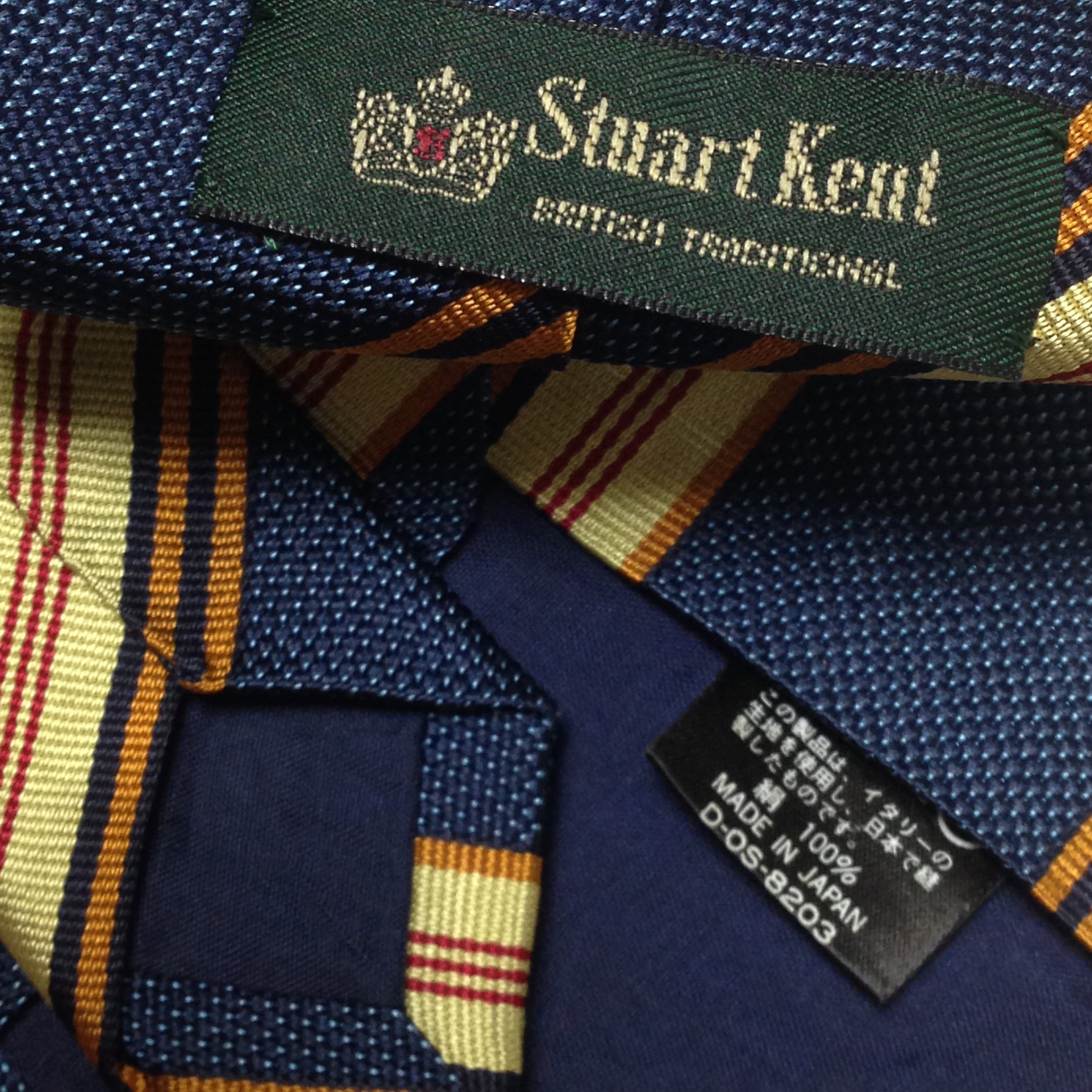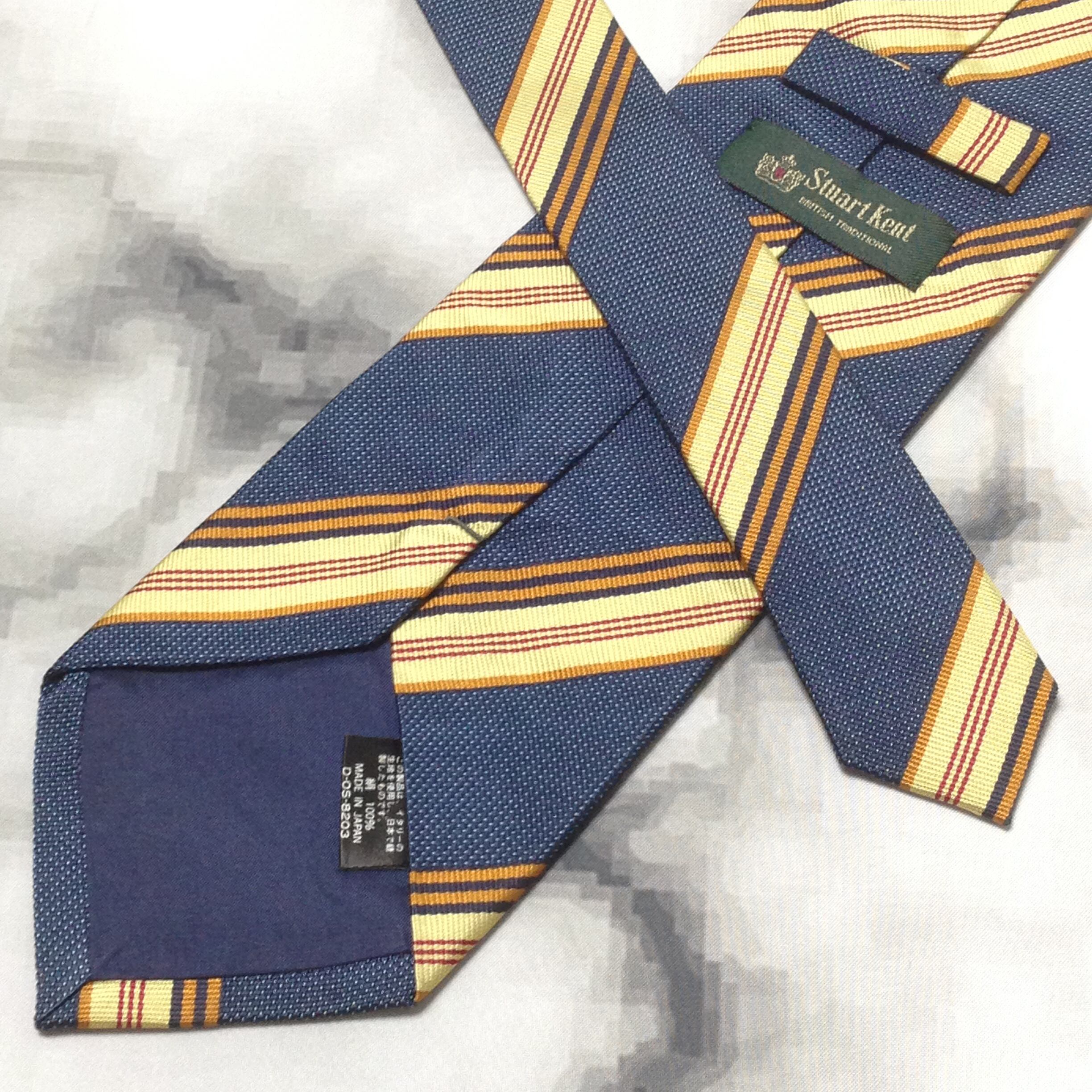 スチュアートケント STUART KENT 良品 微光沢 ネクタイ 斜めストライプ レジメンタル 濃紺系 ネイビー系 T-009322