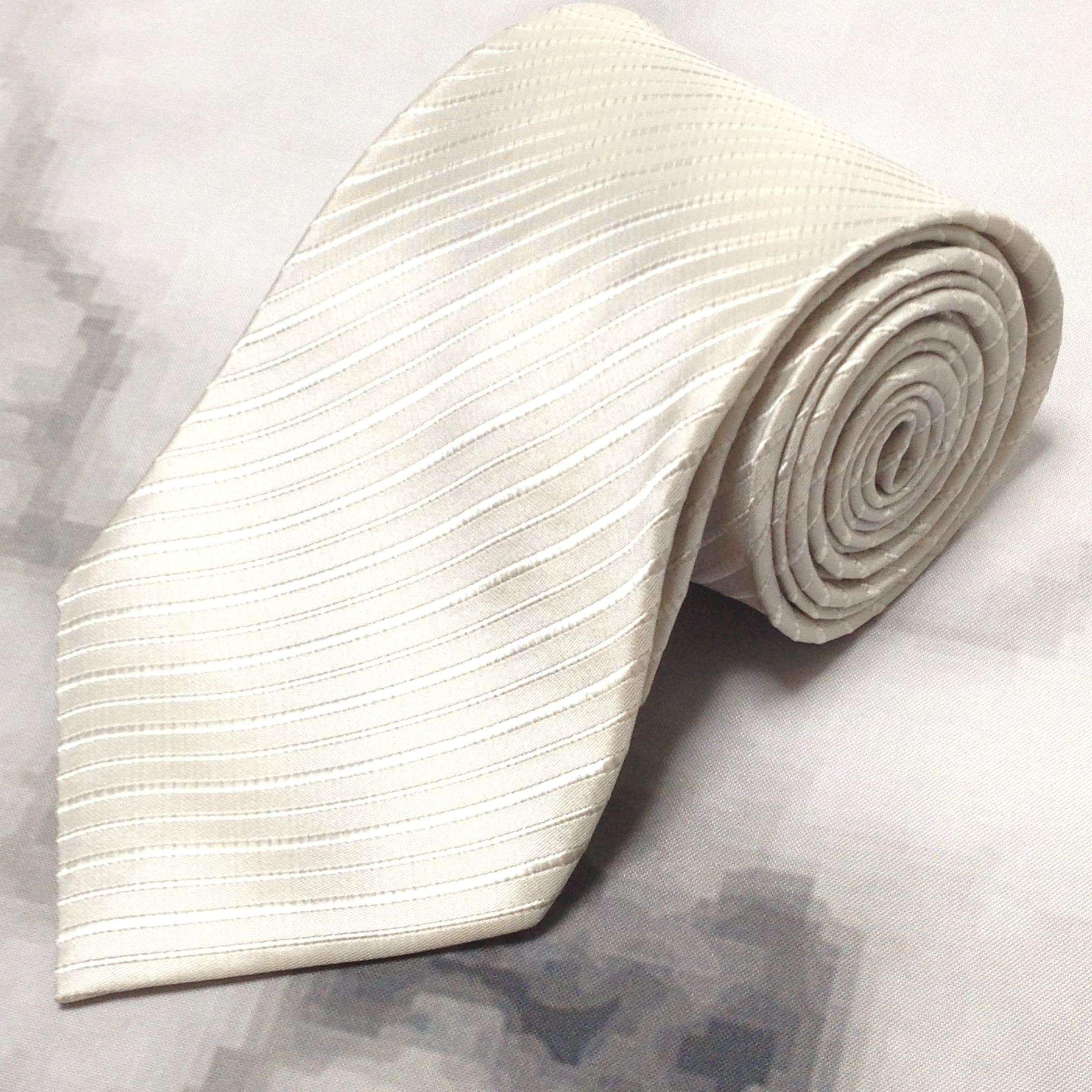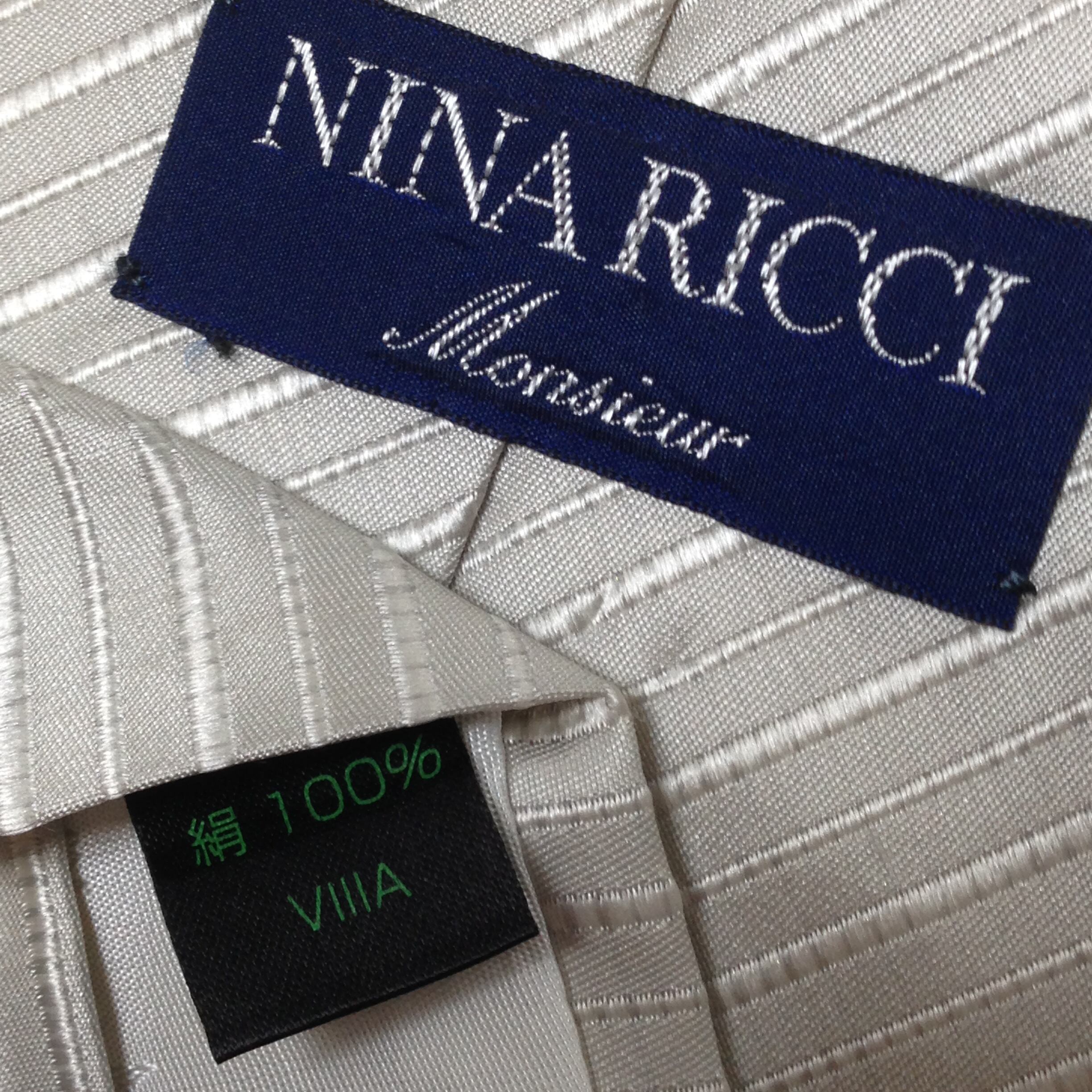 ニナリッチ NINA RICCI 微光沢 ネクタイ シルク100% 斜めストライプ レジメンタル ライトグレー系 T-009327