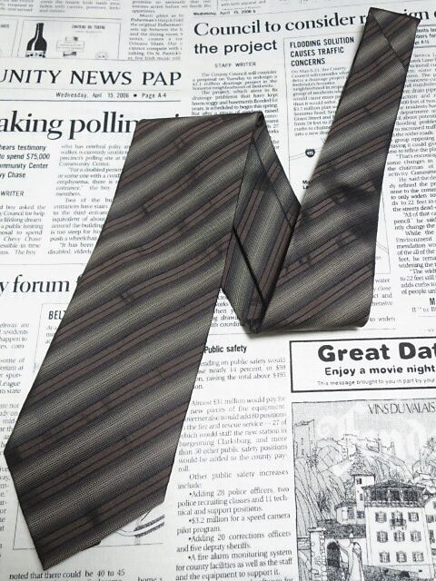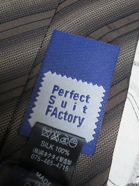 パーフェクトスーツファクトリー PSFA P.S.FA 美品 微光沢 ネクタイ シルク100% 斜めストライプ レジメンタル 裏地ドット柄 茶系 ブラウン系 L-005463