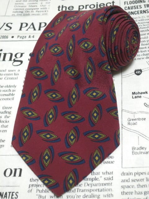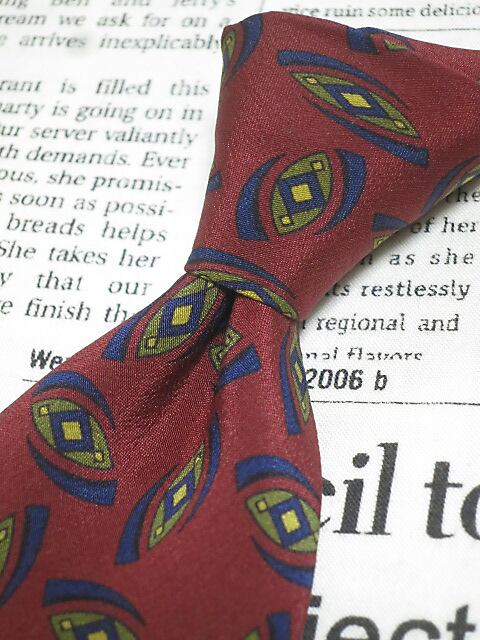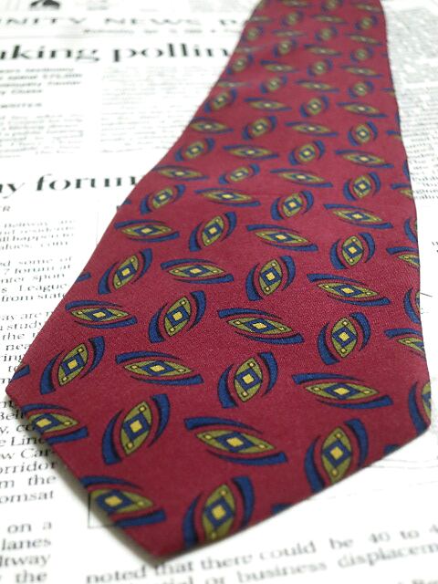 アクアスキュータム Aquascutum 良品 微光沢 ネクタイ イタリア製 シルク100% パターン柄 ワインレッド系 赤系 L-005475