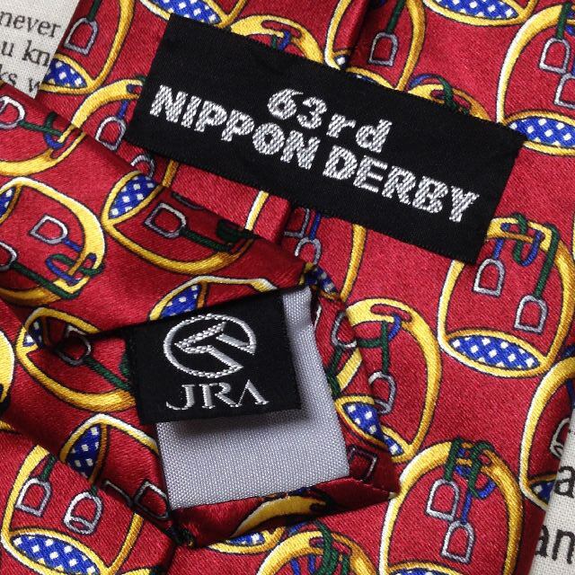 63回 日本ダービー JRA 63rd NIPPON DERBY 美品 微光沢 ネクタイ 日本製 シルク100% 馬具柄 ミックス J-006992