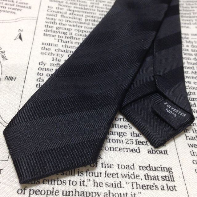 コムサイズム COMME CA ISM 美品 微光沢 ネクタイ ナロータイ ポリエステル100% シャドー斜めストライプ レジメンタル ダークグレー系 黒系 J-007024