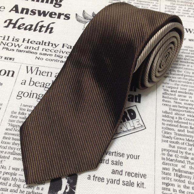 メンズメルローズ MEN'S MELROSE 良品 微光沢 ネクタイ 日本製 シルク100% 2way シャドー斜めストライプ 茶系 ブラウン系 J-007026