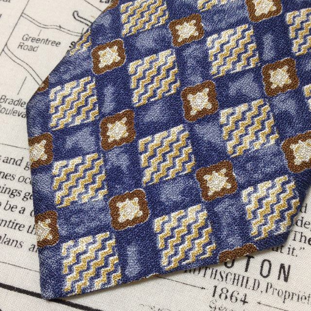 レノマ renoma 美品 未使用品 微光沢 ネクタイ イタリア製 シルク100% パターン柄 ミックス J-007028