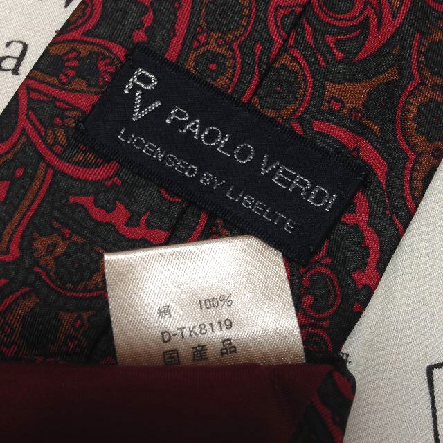 パオロ ヴァーディ PAOLO VERDI 美品 未使用品 微光沢 ネクタイ 日本製 シルク100% ペイズリー調 ポケットチーフ付き ミックス J-007034