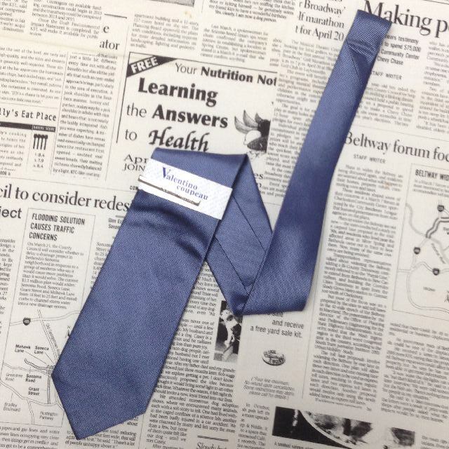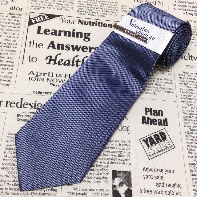 バレンチノ クーポー VALENTINO COUPEAU ヴァレンチノ 美品 新品未使用タグ付 微光沢 ネクタイ シルク100% 無地 ネクタイピン付き 濃紺系 ネイビー系 J-007036