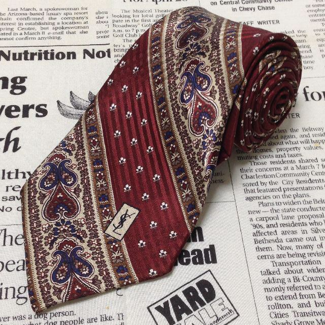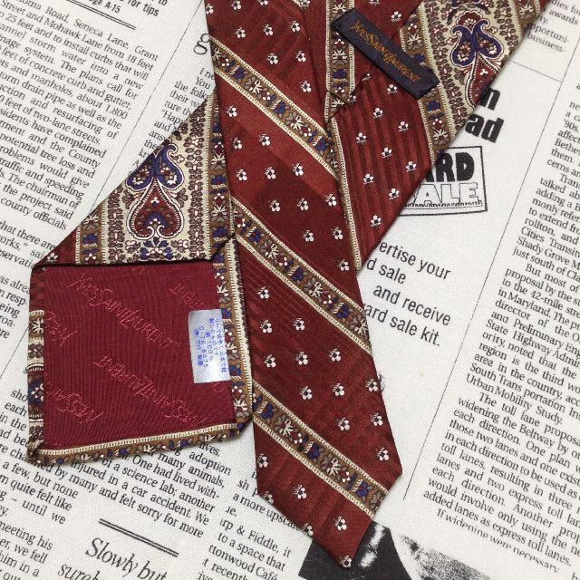イヴ サンローラン Yves saint Laurent YSL 美品 未使用品 微光沢 ネクタイ 斜めストライプ レジメンタル J-007040