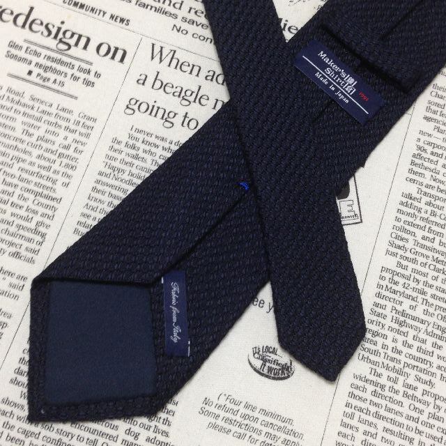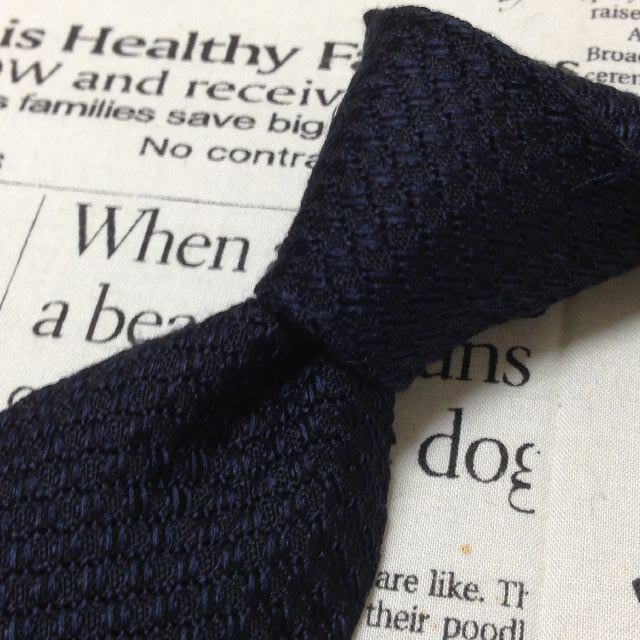 鎌倉シャツ メーカーシャツ鎌倉 美品 微光沢 ネクタイ シルク カシミヤ パターン柄 濃紺系 ネイビー系 J-007050