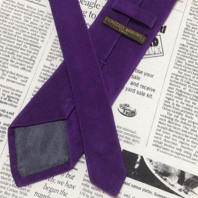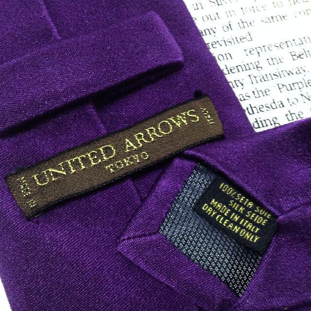 ユナイテッドアローズ UNITED ARROWS 良品 ネクタイ イタリア製 無地 ベロア調 パープル系 紫系 K-007084