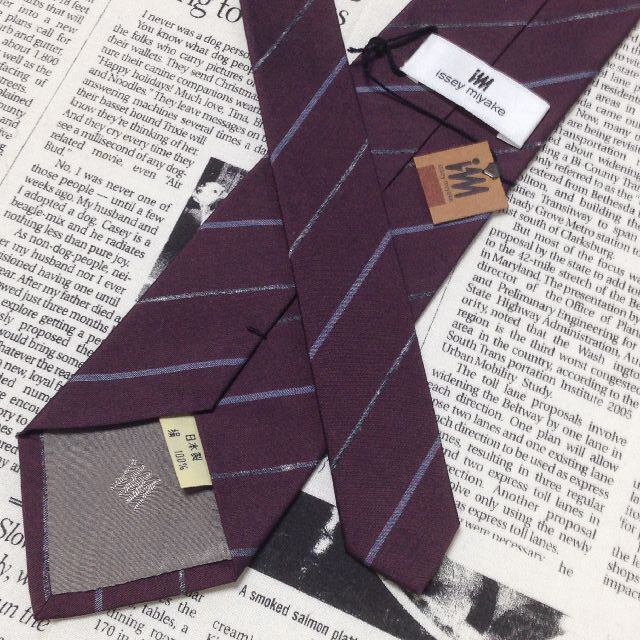 イッセイ ミヤケ ISSEY MIYAKE im 美品 新品未使用タグ付 微光沢 ネクタイ 斜めストライプ ミックス K-007097