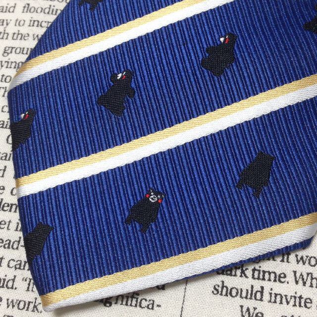 くまモン 美品 未使用品 微光沢 ネクタイ ポリエステル100% ウォッシャブル 斜めストライプ ミックス L-007207