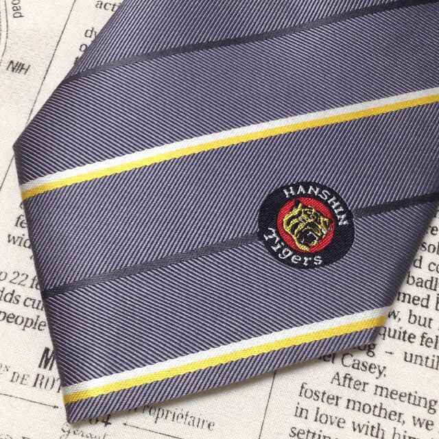 阪神 タイガース HANSHIN Tigers プロ野球 美品 未使用品 微光沢 ネクタイ 斜めストライプ スポーツ L-007218