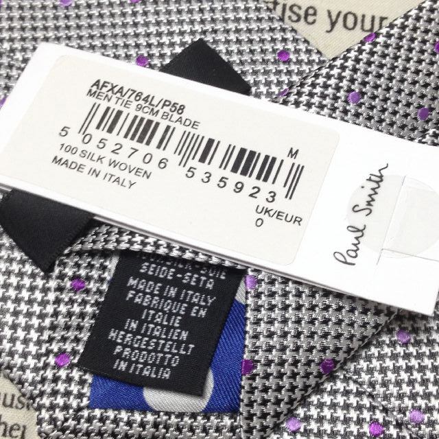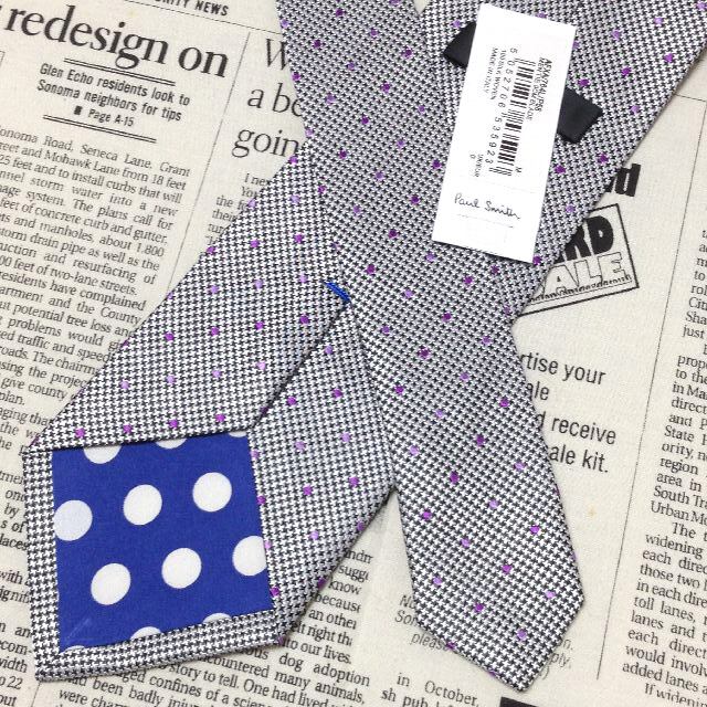ポールスミス Paul smith 美品 新品未使用タグ付 微光沢 ネクタイ シルク ドット柄 裏地ドット柄 ミックス L-007234