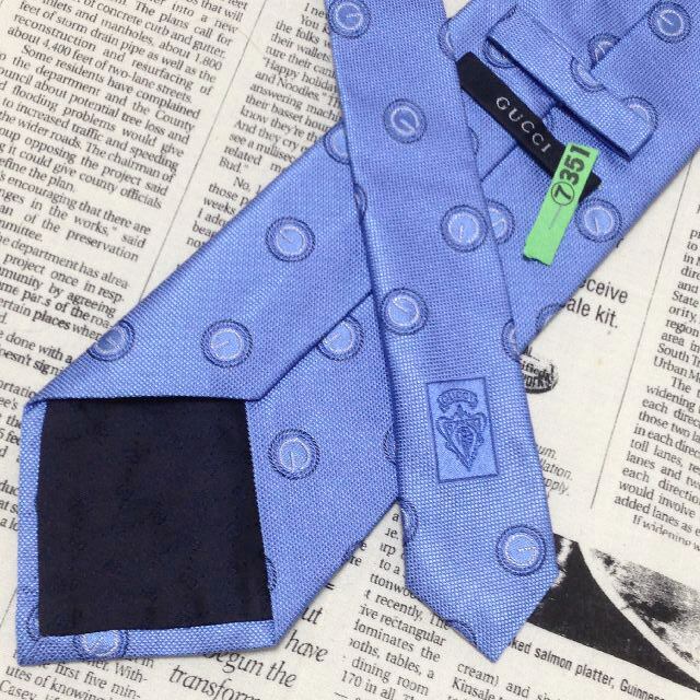 グッチ GUCCI 良品 クリーニング済 微光沢 ネクタイ イタリア製 シルク100% パターン柄 青系 ブルー系 L-007252