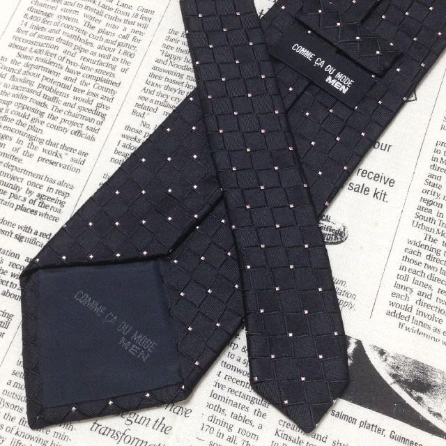コムサデモード メン COMME CA DU MODE MEN 未使用品 微光沢 ネクタイ ブロックドット柄 黒系 ブラック系 M-007269