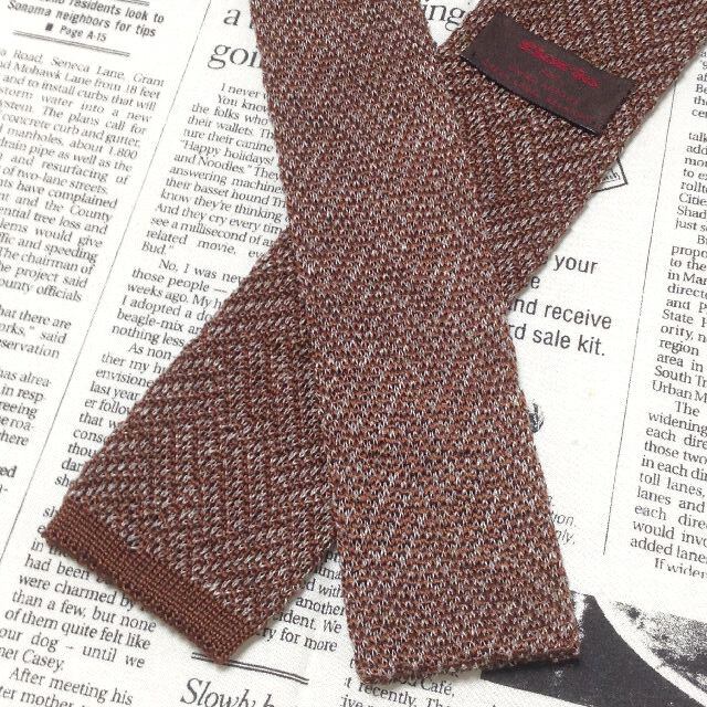 フィオリオ ユナイテッドアローズ fiorio by UNITED ARROWS 美品 ネクタイ ニット スクエア タイ 茶系 ブラウン系 M-007270