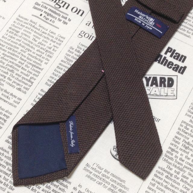 鎌倉シャツ メーカーズシャツ鎌倉 Makers Shirt 1991 良品 微光沢 ネクタイ 無地 茶系 ダークブラウン系 M-007276