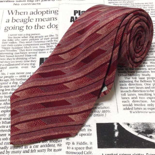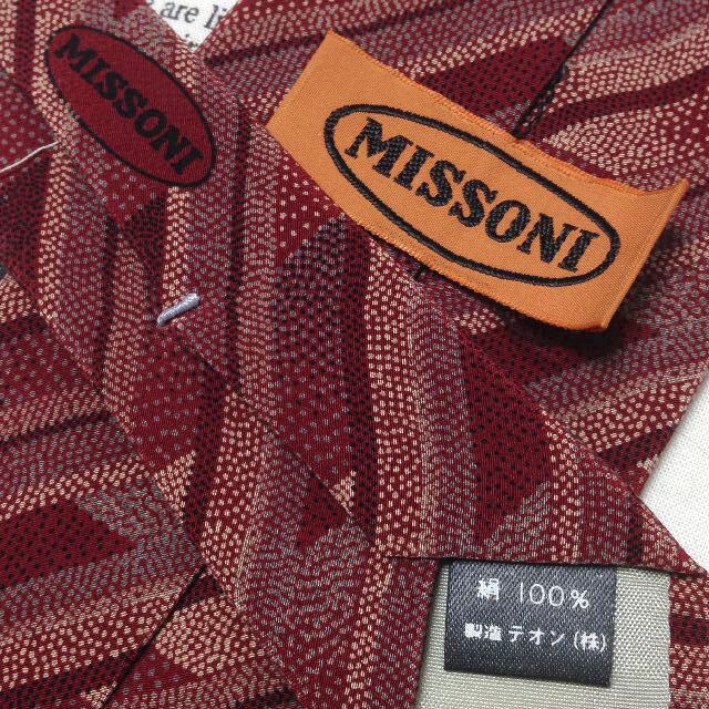 ミッソーニ MISSONI 美品 未使用品 微光沢 ネクタイ シルク 斜めストライプ レジメンタル レッド系 赤系 M-007286
