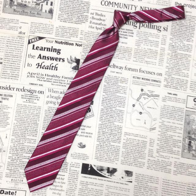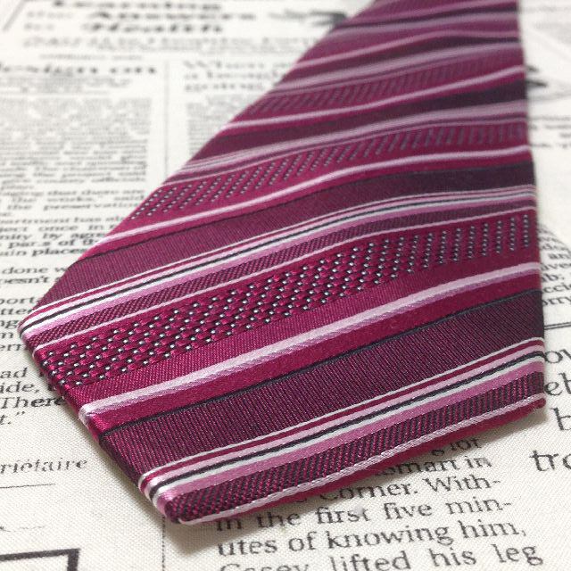 タケオキクチ TAKEO KIKUCHI 微光沢 ネクタイ シルク 斜めストライプ レジメンタル ワインレッド系 赤系 M-007287