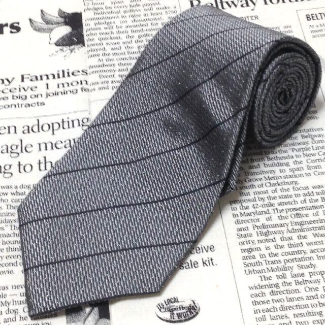 ヒロココシノ HIROKO KOSHINO オム HOMME 美品 未使用品 微光沢 ネクタイ 斜めストライプ グレー系 M-007309