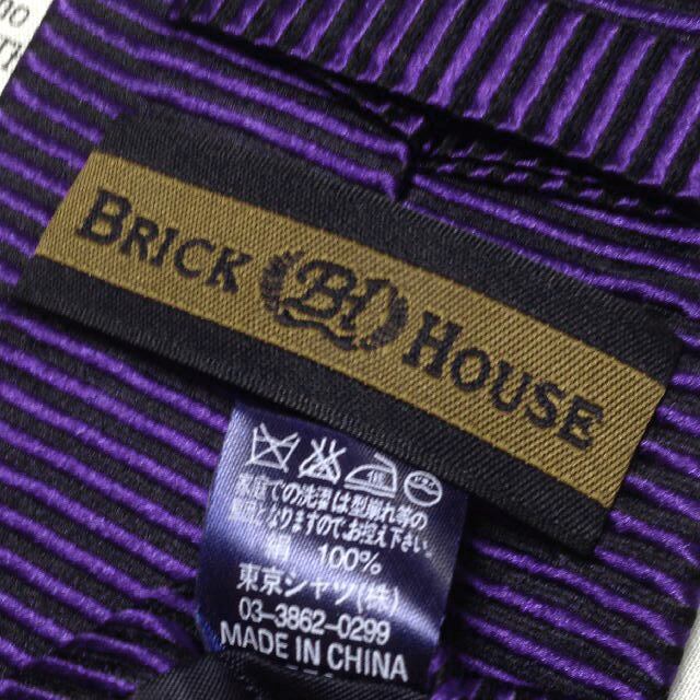 ブリックハウス BRICK HOUSE 美品 未使用品 微光沢 ネクタイ シャドーボーダー柄 ディープパープル系×黒系 M-007324
